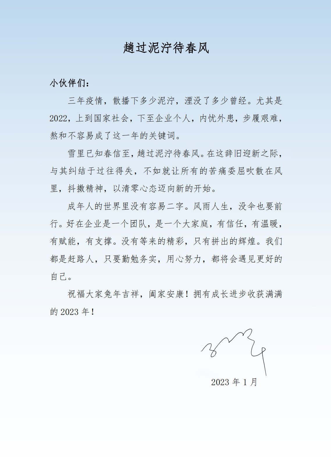 趟過(guò)泥濘待春風(fēng)——2023董事長(zhǎng)新年賀詞